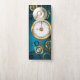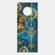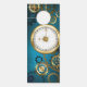 Turquoise, textured, steampunk background with brass and gold gears, a silver key and the clock. Steampunk style.