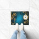 Turquoise, textured, steampunk background with brass and gold gears, a silver key and the clock. Steampunk style.