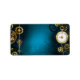 Turquoise, textured, steampunk background with brass and gold gears, a silver key and the clock. Steampunk style.