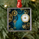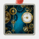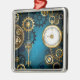 Steampunk turquoise Background with Gears Metal Ornament