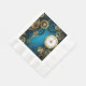 Turquoise, textured, steampunk background with brass and gold gears, a silver key and the clock. Steampunk style.