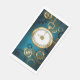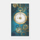 Turquoise, textured, steampunk background with brass and gold gears, a silver key and the clock. Steampunk style.