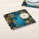 Turquoise, textured, steampunk background with brass and gold gears, a silver key and the clock. Steampunk style.