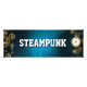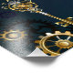 Turquoise, textured, steampunk background with brass and gold gears, a silver key and the clock. Steampunk style.