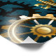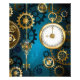 Turquoise, textured, steampunk background with brass and gold gears, a silver key and the clock. Steampunk style.