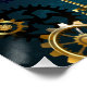 Turquoise, textured, steampunk background with brass and gold gears, a silver key and the clock. Steampunk style.