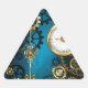 Turquoise, textured, steampunk background with brass and gold gears, a silver key and the clock. Steampunk style.