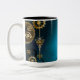 Steampunk turquoise Background with Gears Two-Tone Coffee Mug