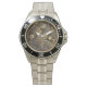 Has heft and feel of expensive stainless steel quartz watches. Good band with safety catch. I removed links, which is easy because engraved arrows show direction to push the linking pins. As always by this seller, the image (a railroad logo) is a perfect reproduction of my emailed image, and is precisely spaced and aligned.