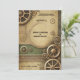 Step into a world of timeless elegance and industrial charm with this steampunk-inspired wedding invitation. Featuring intricate brass gears, vintage clockwork, and ornate metallic details, this design blends Victorian sophistication with a mechanical aesthetic. Aged parchment textures and a deep emerald green backdrop create an authentic, antique-inspired feel, making it perfect for steampunk, retro-futuristic, or vintage-themed weddings. The structured layout and refined typography add a touch of elegance, ensuring your guests receive a unique and memorable invitation. A part of an exclusive high-end wedding collection, including matching RSVP cards, menus, guest books, and signage for a cohesive look. This design was created using AI technology. Click ‘Personalize’ to customize your wedding invitation today!