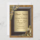 Gothic - Gold & Brass Steampunk Wedding on Suede texture with a dark leather frame wedding theme invitation set to personalize