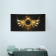 Shiny mechanical wings, with gears and brass round banner. Steampunk