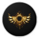 Shiny mechanical wings, with gears and brass round banner. Steampunk