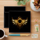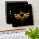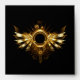Shiny mechanical wings, with gears and brass round banner. Steampunk