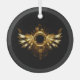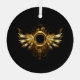 Shiny mechanical wings, with gears and brass round banner. Steampunk