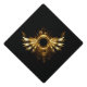 Shiny mechanical wings, with gears and brass round banner. Steampunk