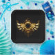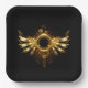 Shiny mechanical wings, with gears and brass round banner. Steampunk