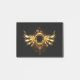Shiny mechanical wings, with gears and brass round banner. Steampunk