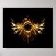 Shiny mechanical wings, with gears and brass round banner. Steampunk
