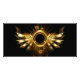 Shiny mechanical wings, with gears and brass round banner. Steampunk