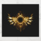 Shiny mechanical wings, with gears and brass round banner. Steampunk