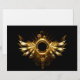 Shiny mechanical wings, with gears and brass round banner. Steampunk