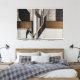 A bold fusion of geometric structure and organic delicacy: stylized black-and-white leaves intertwine with wood, metal, and golden diagonal lines. Art that bridges contemporary architecture and abstract nature—sophisticated, balanced, and deeply narrative.