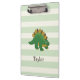 Cool, colourful kid's green and tan prehistoric stegosaurus dinosaur, dino design on pastel mint green and off white stripes pattern. Perfect gift for baby, toddler, kids, children, teens, or adults! Personalized the design by adding a child's name or custom text. Visit our store, Birthday Party House, for more great customizable boy and girl products!