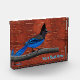 A primitive, or folk-art-style, image of a Steller's Jay (Cyanocitta stelleri) on the reddish inner or reverse side of the bark of a paper birch (Betula payrifera). Add your own text.