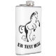Stenciled Black Horse Rearing with Dust Swirls Hip Flask