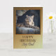 A birthday card for step dad showing a regal snow leopard lying in his cave.