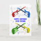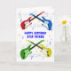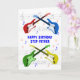 A beautiful birthday card for a step father. Electric guitar colourful art with a music scale in the background. You cannot have too many guitars. A very cool guitar birthday card,celebrates the energy and sheer fun of this musical instrument. A perfect birthday card for guitarists and music lovers.