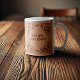 Get your brain in gear with a coffee before tackling that job. A mug featuring a caption and an original knotwork design in weathered brown, inspired by Celtic sources. Use "Personalize this template" to change the "Step One Drink Coffee" if desired. The tribal knot work is framed by ornamental swirls, and pattern and text sit upon a light brown background which can be changed to a different colour before purchase if desired. Knotwork is a recurring feature of Celtic art, often seen adorning stone and metal artifacts, but can also tie in with fictional themes of mythology or swords and sorcery.