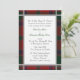 Lovely Scottish tartan plaid wedding invitation, done with a colourful red and green Stewart clan plaid. A white coloured text area, in the middle is bordered with a pewter tone edging. Text is in black and green and is fully customizable to suit your wedding needs. Personalize text as is, or customize to change colours and font styles.