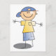 stick boy wearing a short's outfit with a blue ball cap on his head ~ graphic art