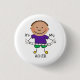 A cute stick figure birthday design button featuring a stick figure boy with brown hair in a purple shirt, green shorts, and text that reads It's My Birthday. Add your child's name easily to customize this cute stick figure birthday T-shirt!