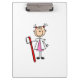A cute stick figure dentist or dental assistant design clipboard features a female stick figure dentist with a big red toothbrush!