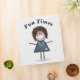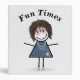 Cute stick figure girl with hair, blue denim dress, pearl necklace, red glasses, and sneakers on soft white textured background.