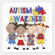 Help spread the message of Autism awareness with this stick figure kids Autism Awareness design on T-shirts, mugs, magnets, tote bags, cards, keychains, stickers, keepsakes, and other items.
