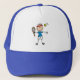 A stick figure tennis player on a oh so cute hat that you can customize with a text saying or name!