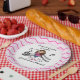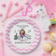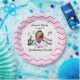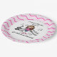 A stick figure girl violin player in a pink dress on pink chevron design paper plates. Customer request