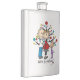 The product is a good size and came exactly as it was pictured. The lid is not attached to the flask, which could be dangerous on drunken nights... The print came out surprisingly well and looks very sharp. Would definitely recommend.