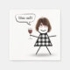 Stick girl wearing buffalo plaid dress with hair, glasses, and holding a glass of red wine for cocktail party.
