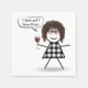 Stick girl wearing buffalo plaid dress with hair, glasses, and holding a glass of red wine for cocktail party.