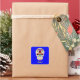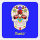 This intriguing Day of the Dead style design features a sugar skull with a rose, lilies, and red diamonds, with a sort of a hippie or boho look. The skull is set against a bright blue background. If you or your recipient likes skulls or Día de Muertos themes, this might be the right pick for them.