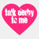Bright pink/red heart sticker with "talk derby to me". 20 stickers in the pack! Give one to all of the crushes!