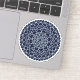 Un mandala en forme de dentelle en cercle concentrique en bleu clair avec des points bleu vif et dorés comme des étoiles, frangés entre les couches, crée un design amusant qui rappelle un ciel étoilé étoilé.