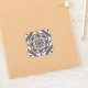 Un mandala carré concentrique prend l'apparence d'un tunnel qui attire le spectateur avec une combinaison de lignes angulaires, de triangles et de cercles dans les tons gris, rouge et blanc pour presque créer une illusion d'optique.