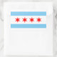 Trois bandes blanches représentent les côtés nord, ouest et sud de la ville. La bande bleue supérieure représente le lac Michigan et la branche nord de la rivière Chicago. La bande bleue du fond représente la branche sud de la rivière et le Grand Canal. La première étoile représente Fort Dearborn. Ses six points symbolisent le transport, le travail, le commerce, la finance, la popularité et la salubrité. La deuxième étoile représente le Grand incendie de Chicago de 1871. Ses six points représentent les vertus de la religion, de l'éducation, de l'esthétique, de la justice, de la bienfaisance et de la fierté civique. La troisième étoile symbolise l'Exposition Colombienne du Monde de 1893. Ses six points représentent des entités politiques auxquelles Chicago a appartenu et les drapeaux qui ont survolé la région : la France, la Grande-Bretagne, la Virginie, le Territoire du Nord-Ouest, le Territoire de l'Indiana et l'Illinois. La quatrième étoile représente le Century of Progress Exposition (1933-1934). Ses points se réfèrent à des droits de gloire : la 2ème plus grande ville des États-Unis (3ème maintenant), la devise latine de Chicago (Urbs in horto - City in a garden), la devise "I Will" de Chicago, la Grand Central Marketplace, Wonder City et Convention City. — paraphrase de Wikipedia