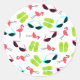 Un autocollant avec un motif de flamants roses, tongs verts, lunettes de soleil roses et bleues.